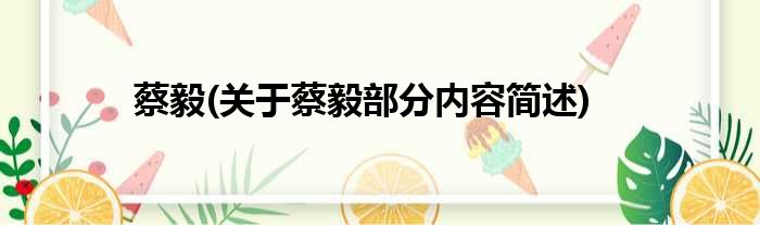 大家好,今天小方来说说一篇关于蔡毅,关于蔡毅部分内容简述的文章,那么现在就为大家来简单介绍下,希望对各位小伙伴们有所帮助。