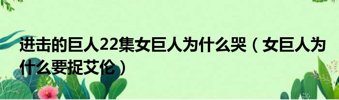导读 大家好,小活来为大家解答以上的问题。进击的巨人22集女巨人为什么哭,女巨人为什么要捉艾伦这个很多人还不知道,现在让我们一起来看看吧!1