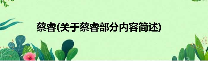 大家好,今天小方来说说一篇关于蔡睿,关于蔡睿部分内容简述的文章,那么现在就为大家来简单介绍下,希望对各位小伙伴们有所帮助。