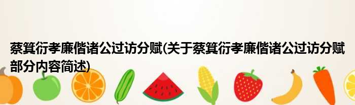 蔡箕衍孝廉偕诸公过访分赋(关于蔡箕衍孝廉偕诸公过访分赋部分内容简述)