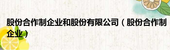 大家好,小活来为大家解答以上的问题。股份合作制企业和股份有限公司,股份合作制企业这个很多人还不知道,现在让我们一起来看看吧!