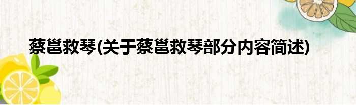 蔡邕救琴(关于蔡邕救琴部分内容简述)