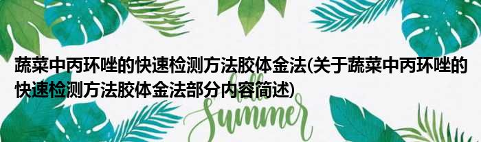蔬菜中丙环唑的快速检测方法胶体金法(关于蔬菜中丙环唑的快速检测方法胶体金法部分内容简述)