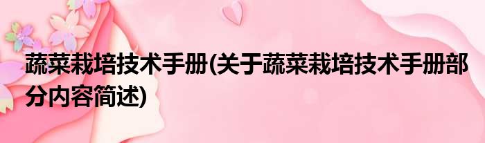 蔬菜栽培技术手册(关于蔬菜栽培技术手册部分内容简述)