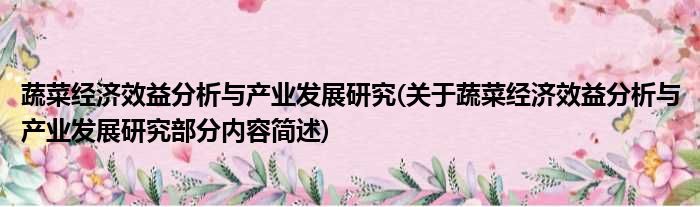 蔬菜经济效益分析与产业发展研究(关于蔬菜经济效益分析与产业发展研究部分内容简述)