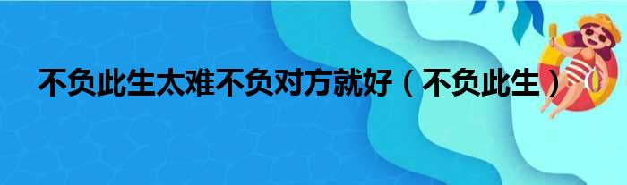导读 大家好,小活来为大家解答以上的问题。不负此生太难不负对方就好,不负此生这个很多人还不知道,现在让我们一起来看看吧!1、不辜负今生。2、