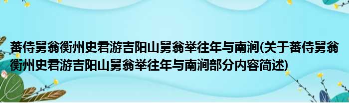 蕃侍舅翁衡州史君游吉阳山舅翁举往年与南涧(关于蕃侍舅翁衡州史君游吉阳山舅翁举往年与南涧部分内容简述)
