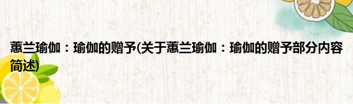 蕙兰瑜伽:瑜伽的赠予(关于蕙兰瑜伽:瑜伽的赠予部分内容简述)