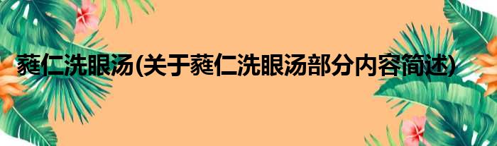 导读 大家好,今天小方来说说一篇关于蕤仁洗眼汤,关于蕤仁洗眼汤部分内容简述的文章,那么现在就为大家来简单介绍下,希望对各位小伙伴们有所帮