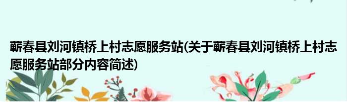 蕲春县刘河镇桥上村志愿服务站(关于蕲春县刘河镇桥上村志愿服务站部分内容简述)