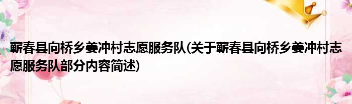 蕲春县向桥乡姜冲村志愿服务队(关于蕲春县向桥乡姜冲村志愿服务队部分内容简述)