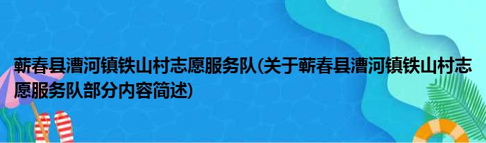 蕲春县漕河镇铁山村志愿服务队(关于蕲春县漕河镇铁山村志愿服务队部分内容简述)