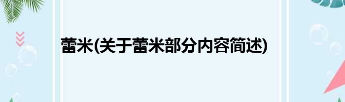 导读 大家好,今天小方来说说一篇关于蕾米,关于蕾米部分内容简述的文章,那么现在就为大家来简单介绍下,希望对各位小伙伴们有所帮助。