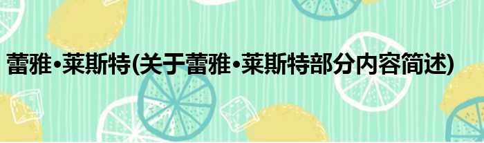 蕾雅·莱斯特(关于蕾雅·莱斯特部分内容简述)