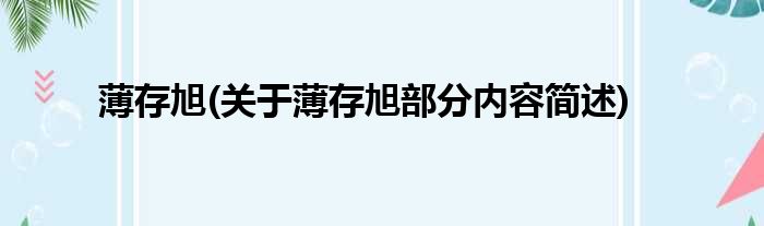 导读 大家好,今天小方来说说一篇关于薄存旭,关于薄存旭部分内容简述的文章,那么现在就为大家来简单介绍下,希望对各位小伙伴们有所帮助。