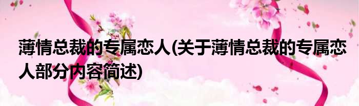 薄情总裁的专属恋人(关于薄情总裁的专属恋人部分内容简述)
