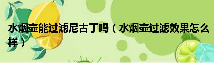 水烟壶能过滤尼古丁吗(水烟壶过滤效果怎么样)