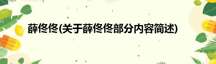 导读 大家好,今天小方来说说一篇关于薛佟佟,关于薛佟佟部分内容简述的文章,那么现在就为大家来简单介绍下,希望对各位小伙伴们有所帮助。