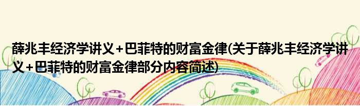 薛兆丰经济学讲义+巴菲特的财富金律(关于薛兆丰经济学讲义+巴菲特的财富金律部分内容简述)