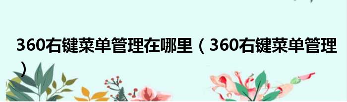 大家好,小活来为大家解答以上的问题。360右键菜单管理在哪里,360右键菜单管理这个很多人还不知道,现在让我们一起来看看吧!