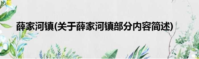 导读 大家好,今天小方来说说一篇关于薛家河镇,关于薛家河镇部分内容简述的文章,那么现在就为大家来简单介绍下,希望对各位小伙伴们有所帮助。