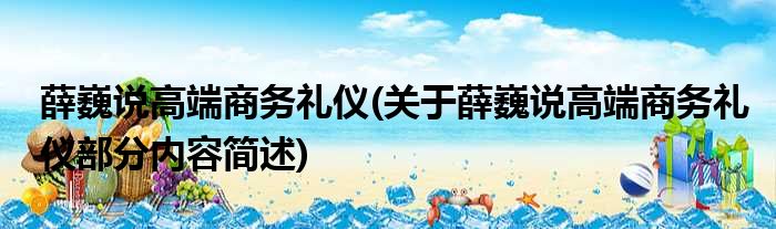 薛巍说高端商务礼仪(关于薛巍说高端商务礼仪部分内容简述)