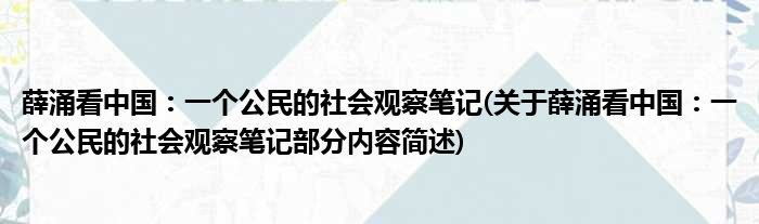 导读 大家好,今天小方来说说一篇关于薛涌看中国:一个公民的社会观察笔记,关于薛涌看中国:一个公民的社会观察笔记部分内容简述的文章,那么现