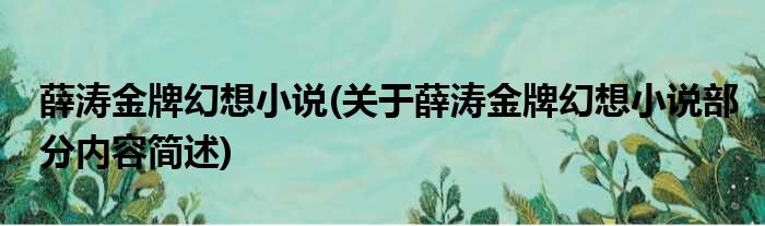薛涛金牌幻想小说(关于薛涛金牌幻想小说部分内容简述)