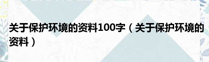 大家好,小活来为大家解答以上的问题。关于保护环境的资料100字,关于保护环境的资料这个很多人还不知道,现在让我们一起来看看吧!