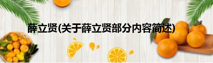 导读 大家好,今天小方来说说一篇关于薛立贤,关于薛立贤部分内容简述的文章,那么现在就为大家来简单介绍下,希望对各位小伙伴们有所帮助。