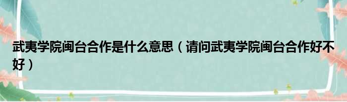 武夷学院闽台合作是什么意思(请问武夷学院闽台合作好不好)