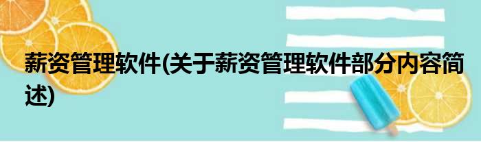 薪资管理软件(关于薪资管理软件部分内容简述)