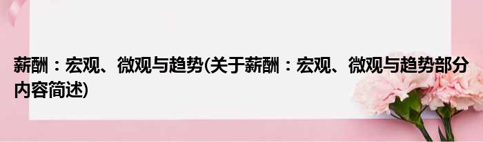 导读 大家好,今天小方来说说一篇关于薪酬:宏观、微观与趋势,关于薪酬:宏观、微观与趋势部分内容简述的文章,那么现在就为大家来简单介绍下,