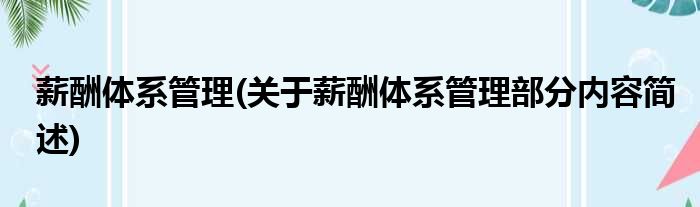 薪酬体系管理(关于薪酬体系管理部分内容简述)