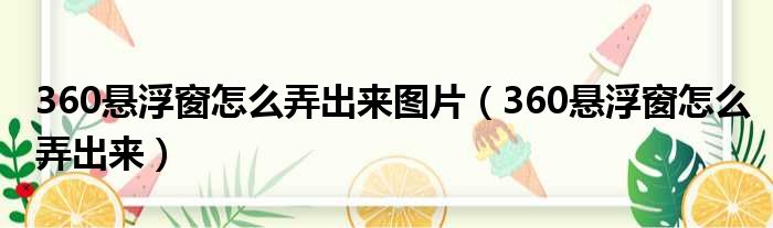 360悬浮窗怎么弄出来图片(360悬浮窗怎么弄出来)