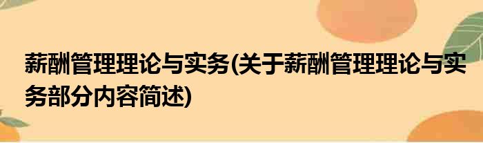 薪酬管理理论与实务(关于薪酬管理理论与实务部分内容简述)