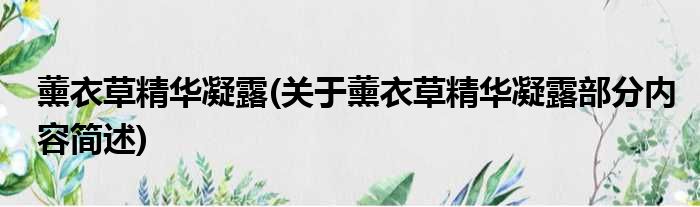 薰衣草精华凝露(关于薰衣草精华凝露部分内容简述)