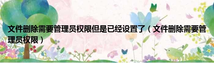 文件删除需要管理员权限但是已经设置了(文件删除需要管理员权限)