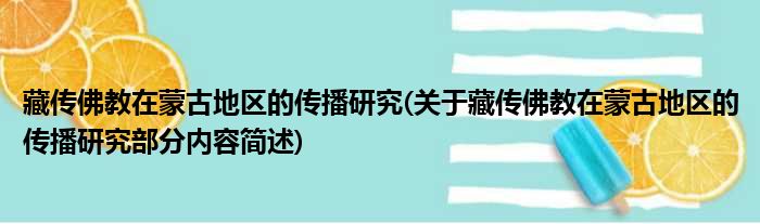 藏传佛教在蒙古地区的传播研究(关于藏传佛教在蒙古地区的传播研究部分内容简述)