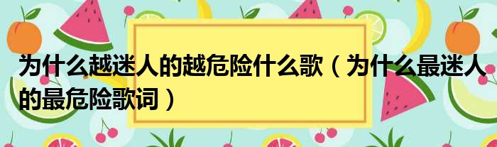 为什么越迷人的越危险什么歌(为什么最迷人的最危险歌词)