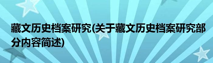 藏文历史档案研究(关于藏文历史档案研究部分内容简述)