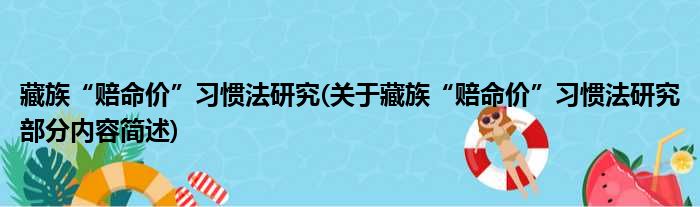 藏族“赔命价”习惯法研究(关于藏族“赔命价”习惯法研究部分内容简述)