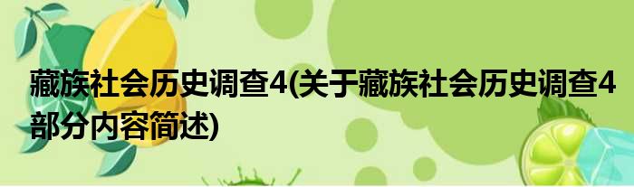 藏族社会历史调查4(关于藏族社会历史调查4部分内容简述)