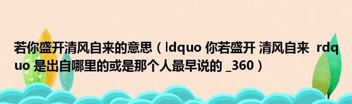 大家好,小活来为大家解答以上的问题。若你盛开清风自来的意思,ldquo 你若盛开 清风自来 rdquo 是出自哪里的或是那个人最早说的 _360这个很多人还不知道,现在让我们一起来看看吧!