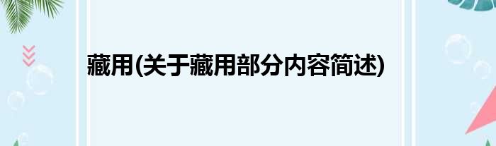 大家好,今天小方来说说一篇关于藏用,关于藏用部分内容简述的文章,那么现在就为大家来简单介绍下,希望对各位小伙伴们有所帮助。