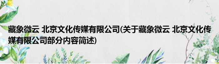 藏象微云 北京文化传媒有限公司(关于藏象微云 北京文化传媒有限公司部分内容简述)