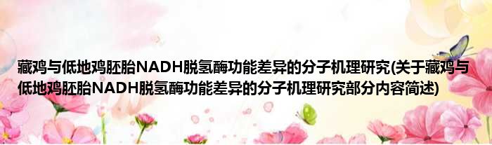 藏鸡与低地鸡胚胎NADH脱氢酶功能差异的分子机理研究(关于藏鸡与低地鸡胚胎NADH脱氢酶功能差异的分子机理研究部分内容简述)