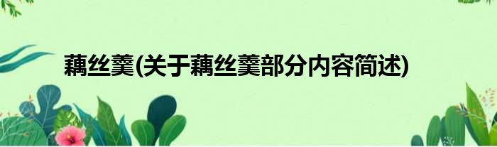 导读 大家好,今天小方来说说一篇关于藕丝羹,关于藕丝羹部分内容简述的文章,那么现在就为大家来简单介绍下,希望对各位小伙伴们有所帮助。