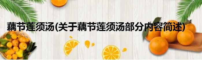 藕节莲须汤(关于藕节莲须汤部分内容简述)