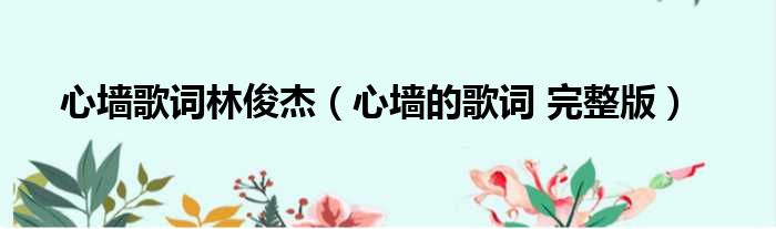 心墙歌词林俊杰(心墙的歌词 完整版)